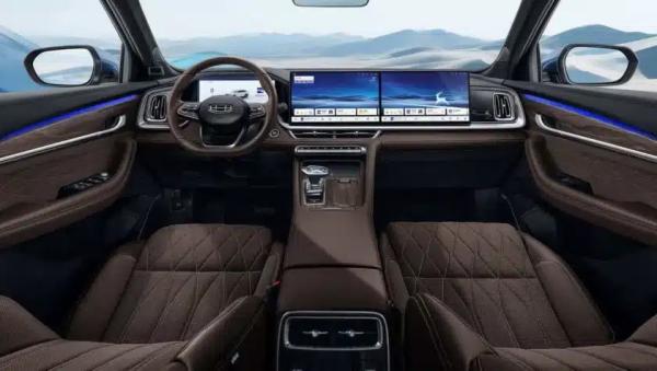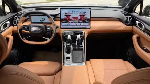 В интерьере — характерная для современных китайских моделей компоновка передней панели. По центру теперь установлен крупный квадратный дисплей мультимедийной системы диагональю 15,4 дюйма с разрешением 2,5K, который заменил прежний вертикальный экран. На обновлённом центральном тоннеле сохранился физический селектор трансмиссии, а перед водителем появились новый руль и компактная цифровая приборная панель с виртуальными шкалами.