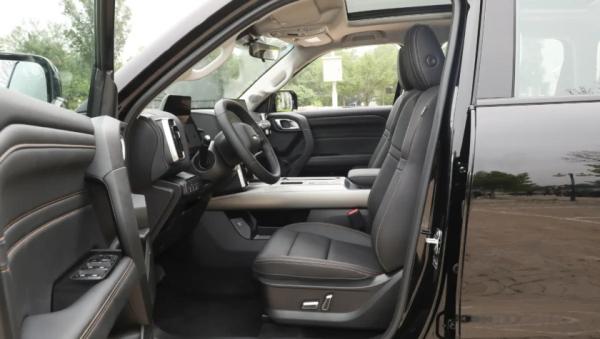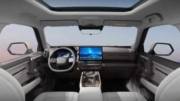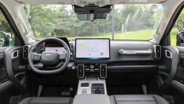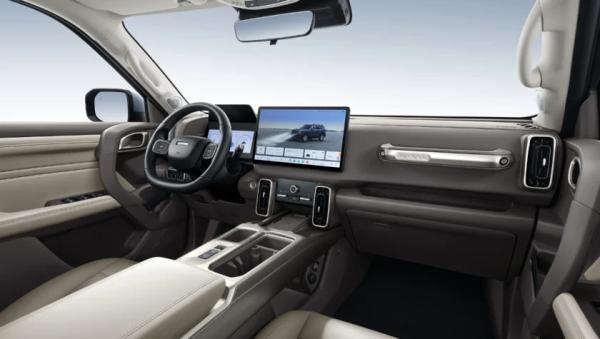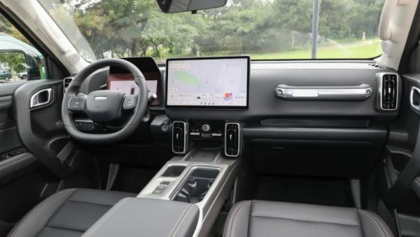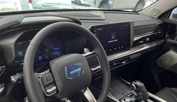 В салоне появился новый фирменный двухспицевый руль, как у современных моделей GWM, а с центрального тоннеля упразднен аналоговый рычаг управления трансмиссией, роль которого теперь выполняет правый подрулевой рычажок.